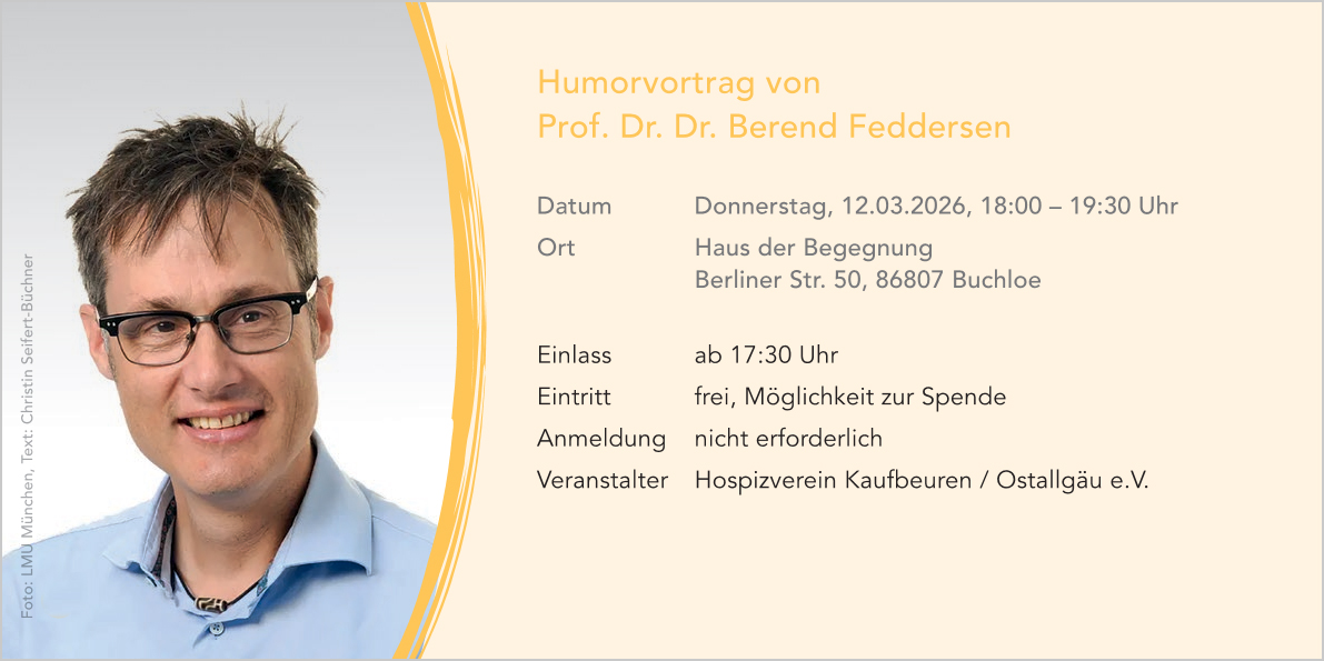 Humorvortrag von Prof. Dr. Dr. Feddersen: „Ich lach mich tot – Humor am Lebensende“
